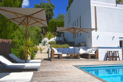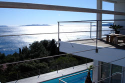 Location vacances villa prestige avec piscine privée dans le Var - Le Lavandou. Très belle propriété de style contemporain bâtie sur le flan de la Corniche non loin du Lavandou. Cette luxueuse maison contemporaine orientée Sud offre une splendide vue sur la mer et les Îles d'Or. Elle est organisée en 3 niveaux dans un style épuré avec une grande pièce ouverte salon /Salle-à-manger donnant sur l'espace extérieur avec une belle piscine et plusieurs espaces de détente pour une location vacances de prestige.